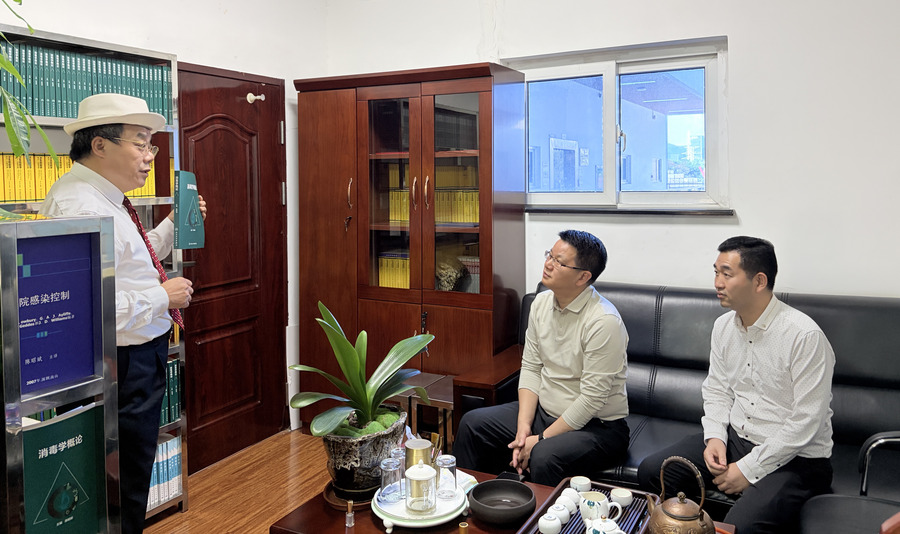 听完陈昭斌教授的介绍后,陈森董事长和胡智慧董事长对陈昭斌教授一直在消毒领域持续耕耘40余年表示深深的敬佩!对陈昭斌教授在消毒学领域所取得的科学成就深感震惊!对【生医】【华验】的核心技术和核心产品高度赞扬!对【华验】今年在纳斯达克上市并实现上市市值500亿元的目标深信不疑!