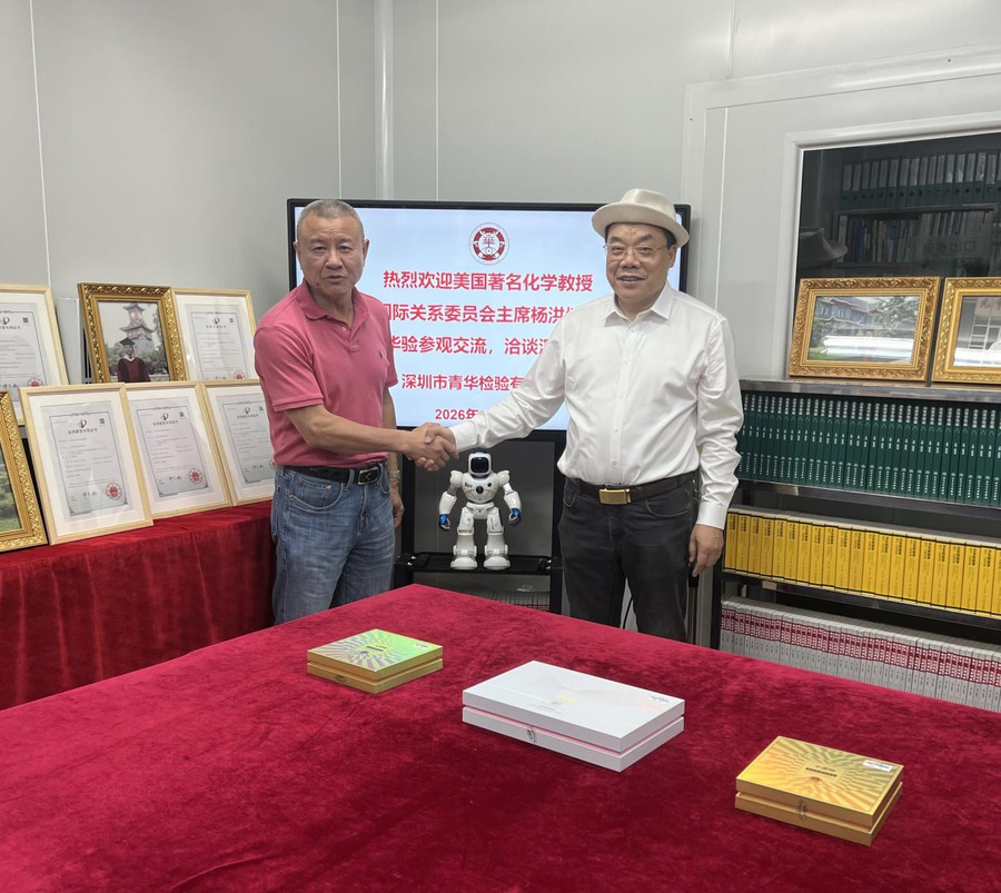 杨洪博士在参观交流过程中,高度赞扬陈昭斌教授的学术成就。对【华验】的原创核心技术和核心产品赞不绝口!三年前,杨洪博士受聘【华验】国际关系委员会主席时,曾莅临【华验】参观交流,并参与了陈昭斌教授的消毒学研究生的毕业论文的预答辩,看到目前【华验】所取得的巨大成绩时,表示非常看好【华验】上市!非常看好【华验】的未来!尤其,当听到陈昭斌教授介绍【华验】的终极目标是要超越强生时,伸出大拇指表示赞赏和点赞!杨洪博士非常认同双方在北美市场的开拓、国际资本的引入、纳斯达克管道的建立、国际人才的引进等方面展开合作,并表示将整合在美国的各种资源,力助【华验】在北美开拓市场,推动【华验】在纳斯达克上市的运作,力助【华验】最终实现第一大战略目标:在纳斯达克上市。对此,陈昭斌教授表示十分的感谢!