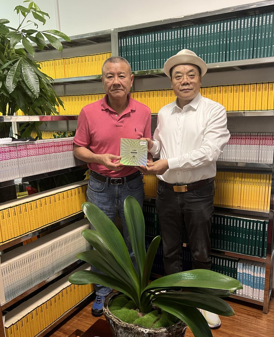 【生医】【华验】董事长陈昭斌教授(右)在【华验】自己的书房向美国著名化学教授杨洪博士(左)赠送了【生医】【华验】的王牌消毒液:
