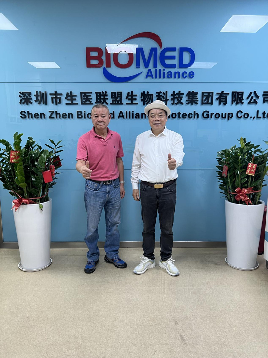【生医】【华验】董事长陈昭斌教授(右)在【华验】的大厅与美国著名化学教授杨洪博士(左)合影